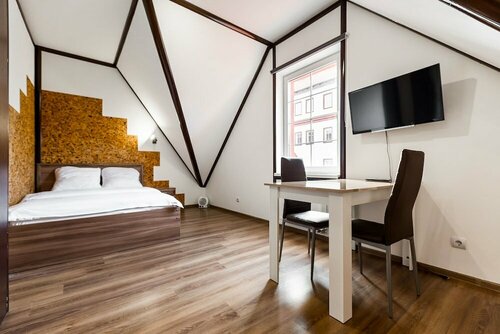 Очень понравилось место - все близко: кафе, закусочные, два продуктовых и, конечно, достопримечательности. Прямо из окна видно Водонапорную башню!