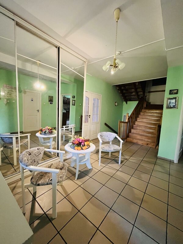 Начнем с того, что баня находится в подвале здания, спускаясь туда, возникло ощущение того, что мы первые посетители за прошедшие несколько лет. Гардеробная зона - два пластиковых стула и вешалка. Туалет страшный, с одиноким куском мыла. Когда смываешь воду в туалете, гудит так, как будто взлетает боинг.
