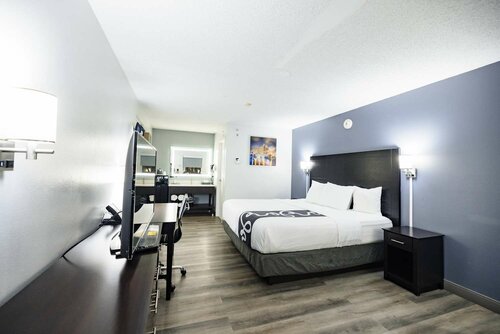 Колоритный. Спокойный, доброжелательный, небольшой по территории. Можно с собаками. В номере две кровати удобные Мини холодильник и микроволновка., кофейный аппарат и кофе. Санузел комфортный, удобный. Уборка отличная. На завтрак вкусные вафли. Небольшая,территория внутреннего садика, пару столиков под тенью деревьев, небольшой бассейн и джакузи. Рядом Буш гарден и Аквапарк, которые от отеля в 5 мин.езды. это очень удобно. На нашем этаже был автомат с напитками,