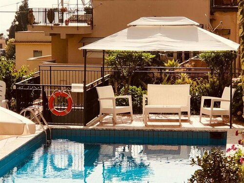 В гостинице есть ресторан, бар. Можно прогуляться по территории и в саду. И вы наверняка захотите отдохнуть у бассейна — он тут тоже есть. Причём открытый, сезонный. Море тут близко — до него всего 1077 м, поэтому легко можно планировать пляжный отдых.
