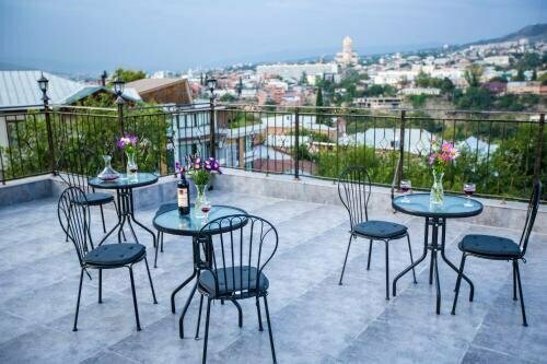 Из плюсов: нас встретила очень приветливая женщина, месторасположение тихое, просторный номер и очень красивый вид на крыше, где можно посидеть.