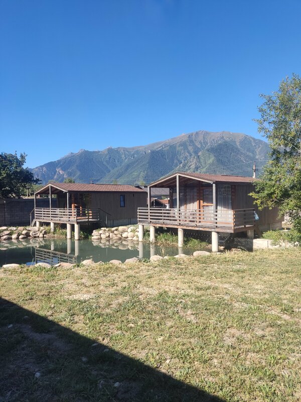 Хорошее место, всего два домика на большом участке. Через участок течет ручей, есть не большой пруд. В домиках все есть, даже больше чем нужно, учитывая что мы целыми днями были в горах