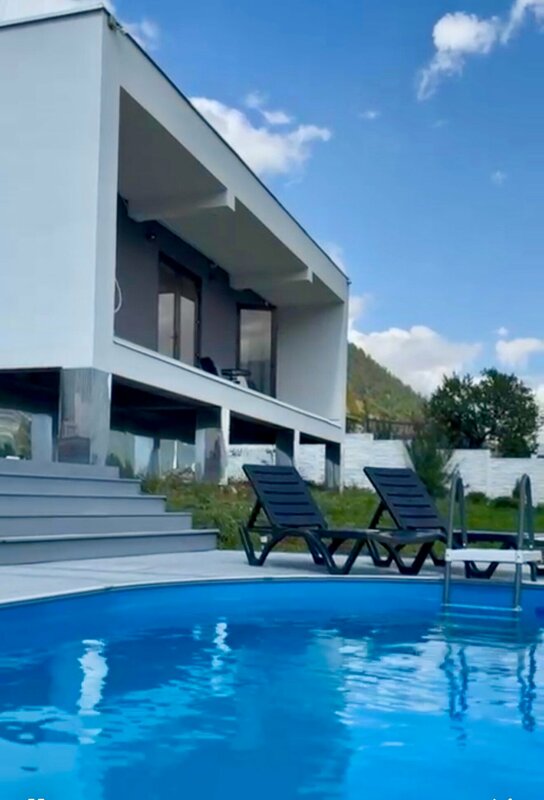Бассейн реально теплый, плавать было очень комфортно. Впечатление смазала мутная вода. Но она набирается из речки, в дожди вода в речке грязная. Не комфортно, но и не критично. Вода по сути чистая.