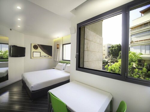 Очень позитивный отель в духе рок-н-ролл битломания. Всё близко можно пешком делать прогулки к морю в парк. Внутри чистота спокойно уютно. Была проблемка у нас в номере мы не смогли сообразить как вкл тв я не зная особо иврит да если честно то и английский спустился в низ на ресепшн попросил мне помочь и ребята мигом всё сделали. Если будет ещё возможность быть в Тель-Авив то остановимся только у них