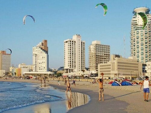 В подъезде музыка играет (негромко, атмосферу создаёт, но никому не мешает), книжки расставлены (иврит, английский, русский, французский нашла). Расположение отличное, до моря 5-10 минут пешком, рядом бульвар и куча кафе и магазинов.
