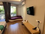 Пляж чудесный через дорожку от отеля, широкая береговая линия и плавный заход в воду. Напротив отеля как правило люди располагаются на полотенцах и подстилках, если пройти вправо или налево, есть лежаки 2шт и зонт 300 бат.
