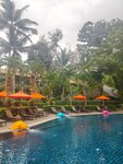 Итак Naiyang Beach Resort and Spa 4 отель в чате которого я просидела 8 месяцев и не зря! Кстати очень милый и говорящий чат, все по делу и самой найти можно, все что интересует и люди хорошие подскажут если что. Отель мы посетили беспрепятственно еще вечером в наш прилет, на посмотреть как же в реале выглядят виллы - oriental grand deluxe все было на месте, как и в отзывах об отеле. Позже когда мы вернулись уже на заселение все рассмотрели более досконально. На ресепшен нас встретили не очень улыбчивые девушки (там не все такие как оказалось) сообщив, что заселение будет в 15.00, поэтому оставив наши чемоданы на ресепшен мы отправились обедать в уже полюбившийся нам Tonson налево из отеля, довольно неплохое кафе с хорошими ценами. Вернулись около 14.00 и нам дали ключ от номера. В отеле залог 1000 бат или 50 долларов, за дополнительный ключ тоже есть залог в размере 300 бат. Так же нам дали купоны на скидку 10% на массаж рядом с отелем. Номер у нас был 234 с раздельными кроватями, по факту они оказались сдвинуты под одной простыней, немного повоевав (а тут не особо спешат, но делают) на ресепшене эту проблему решили. Есть доп диванчик для ребенка и над ним висит кондиционер, не особо хорошо считаю расположен, мы его долго регулировали чтобы не дул на кровать сильно, так как тоже попадает на нее. Кондиционер выходил из строя (потек)- его починили быстро! Удивило, то что я попросила утюг и его принесли с доской, я убрала все это в шкаф и пошла в душ, минут через 5 услышала стук и подумала, что пришли заправить кровати, крикнула: Проходите! Когда вышла и решила погладить вещи, оказалось, что нет ни утюга ни доски) Шустро горничная сработала, с момента как принесли утюг не прошло и 20 минут. Смешно стало и одновременно как то не приятно, что залезла в шкаф . Убирают номера посредственно, если кому-то важно, мусор выносят регулярно, белье меняют и оно не изношено, пополняют запасы, но вот с мытьем пола беда. Тапок и халатов нет, может надо было спросить, но нам не понадобилось. В целом все не плохо, но как оказалось в номерах этой категории Никакая!!! звукоизоляция и одно дело слышать, как твои соседи включают кран и смывают и совсем другое, когда ты просто слышишь о чем вещает уезжающий «Тагил» с которым мы и столкнулись в первую ночь в отеле, просьбы отмечать Отъезд-Приезд после 23 часов потише естественно были проигнорированы разгоряченными алко соседями-на ресепшен отреагировали моментально, до утра мы слышали только, как кого-то тошнило- мгновенная карма))) Я думаю если вы не собираетесь зависать в отеле, то категория номера все равно какая ,совсем уж убитых номеров там нет. Отель постоянно реновируют и что-то меняют. В бассейн мы так и не окунулись, когда есть прекрасное море он не актуален, чистят их регулярно-наблюдали, а вот территория «нашего бассейна» убиралась хуже чем у соседей, у нас было больше зарослей и естественно листва падала регулярно. В более жаркий сезон именно расположение этого бассейна будет актуальным- он не будет сильно нагреваться из-за деревьев.