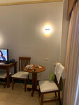 Оплачивали полулюкс, но персонал, увидев, что у нас с мужем день рождения в один день, 13 октября, заселили нас в видовый двухкомнатный номер! Было оооочень приятно! Номер огромный, на 4м этаже, с видом на море и статую Наги, в корпусе сразу возле рецепшен. В день рождения мы обнаружили в номере две огромные корзины с фруктами от администрации! Поверьте, это лучше пироженки! :)) Убирали регулярно, очень хорошо, постели и полотенца меняли, водичку нам горничная, кроме бесплатной еще и в чайник доливала (видимо увидела, что мы часто пьем чай и кофе в номере). Еда на завтраки достаточно разнообразная. Сам отель и бассейн постоянно поддерживается в чистоте. Мы попали в дожди, так персонал с тряпками и швабрами шнырял по отелю не переставая. Улыбаются, готовы помочь.