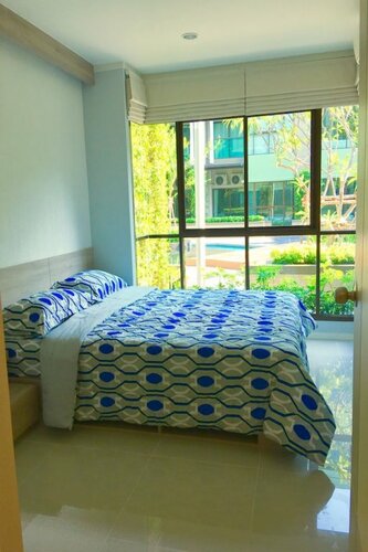 По комплексу, это комплекс апартаментов, здесь есть уборка, но она только по запросу владельцев апартаментов. В апартах есть всё, что надо, кроме плиты, почему не сделали плиту - не ясно. Я купил небольшую в BigC и пользовался ей.