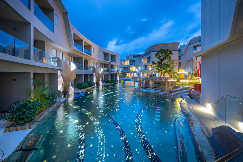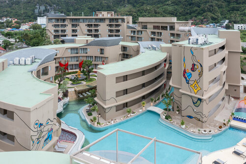 Современный отель, состоящий из нескольких зданий и комплекса вилл. Вдоль всех корпусов и вилл протекает бассейн-река, на территории много зелени, экзотических растений. Понравились завтраки, много блюд азиатской и европейской кухни, вкусный кофе, выпечка, соки. От отели до дороги, ведущей к пляжу, возят на багги, до пляжа Ката бич пешком минут 5, Карон и Ката Ной минут 15-20 пешком.