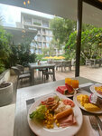 Отдыхали в этом отеле 2 недели с конца марта по 11 апреля 2025г. Все понравилось:номер, завтрак. Белье белоснежное, меняли несколько раз, полотенца так же. Иногда забывали что-то положить, но нас не напрягало. Сами брали в корзинах горничных проходя мимо, либо звонили на ресепшен. Убирались каждый день, причем мыли пол! Приветственная корзинка с фруктами и фигурки из живых листиков-цветочков на кровати..приятно. Выбор блюд на завтраке вполне приличный. всегда был вкусный рис, различные вариации лапши с овощами, с курицей. И моя любимая широкая тайская лапша со шпинатом. ну ,конечно, ветчина,сосиски..яйца в разных видах, но мы это не ели. Ну естественно огурцы,помидоры, болгарский перец, капуста, салат..рядом оливковое масло. Жаль не было оливок)) Китайсая кухня тоже присутствовала. Роллы с овощами очень вкусные, но не каждый день. Фрукты:арбуз,дыня, питахаия. Выпечки ,конечно, маловато. Но мы нашли выход: Круассаны пропускали через тостер и они становились вкусные- хрустящие. Поливали их шоколадом и пили с кофе. Кофемашина вполне с приличным кофе, хотя я не особый ценитель этого напитка, мне понравился. Территория компактная, но,как все пишут в отзывах, очень ухоженная, красивая, в начале апреля все цвело и благоухало! Нужно сказать про один ньюанс, который все-таки иногда доставлял неудобства- это запах канализации в номере, но не всегда, и не понятно от чего зависел. Хотелось бы,чтобы обратили внимание на это работники отеля и устранили это по возможности, чтобы не портить общее положительное впечатление от вашего отеля. Может это не во всех номерах, но у нас так было, к сожалению. Про море! Не далеко, но с маленькими детьми, думаю, не очень удобно, т.к. идти вдоль дороги! У нас таковых не было, нам было нормально. Каждый день брали велосипеды на прокат бесплатно. Очень удобно, приятно прокатится по парку Сиринат и покупаться в дали от всех. Хотя и на пляже народу не много. Единственное, люди, но неужели нельзя уносить за собой всё, что вы съели и выпили! это прям возмутительно..мы с мужем каждый день пакет бутылок уносили..стыдно! А море классное..теплое, спокойное на этом пляже..просто красота! иногда даже хотелось попрыгать на волнах..но увы..только в последний день 11.04 удалось таки.. Может кому-то мой отзыв будет полезным..всем приятного отдыха!