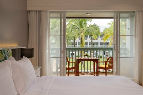 Отдыхала в отеле в октябре 2025 с внуком. Жили в двух этажном домике, в котором расположены 4 номера. Море в трех минутах ходьбы. На пляже есть душ, что дает возможность обмыть ноги от песка. Отель понравился, очень чистая компактная территория. улыбчивый, отзывчивый персонал, Бассейн и пляж чистят ежедневно, шезлонги на пляже моют. Номера после реновации, новые спальные принадлежности, подушки, матрацы. К сожалению, подушки очень неудобные и твердые. Шумный кондиционер, и это все из минусов. Большой плюс, это прекрасное освещение в номере, а это встречается крайне редко в отелях Таиланда. И первый раз я увидела сетку от москитов при выходе на балкон. Завтраки неплохие, всегда было, что выбрать. Кофе, чай персонал сам разносит по столам. Мы попали в то время, когда после дождя часть отеля затопило, Персонал с честью справился с этой бедой. Рядом с отелем небольшая улица, на которой есть все: обменники, массажные салоны, кафешки, магазины. Отдых прошел на отлично. Тихо, спокойно и умиротворено.