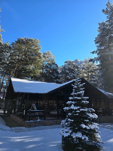 Потрясающее место! Здорово отдохнули, всё было на высшем уровне! И домик прекрасный, внутри всё чисто, уютно, всё необходимое на месте. Вокруг красота, горы, реки, сосновый бор👍Кафе классное, всё было вкусно! В сауне, в чане просто прелесть 👏спасибо!