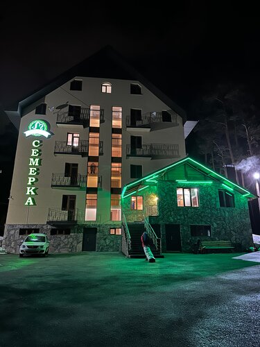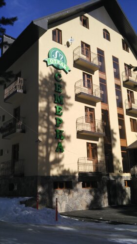 Отель «Семёрка» находится в живописном месте, в шаговой доступности от подъёмника «Чегет» и центральной площади с кафе, сувенирами и магазинами. К услугам гостей — закрытая и охраняемая парковка, бесплатный Wi-Fi на всей территории, сауна и баня, площадка для барбекю, детская площадка, гладильные услуги, круглосуточная стойка регистрации. В номерах есть чайник, холодильник и телевизор. Предоставляются номера для некурящих и номера с видом на горы или лес. Также есть место для хранения лыж и сноубордов, мангальная зона с беседкой. В отеле чистые номера с полотенцами, мылом, шампунем и тапочками. В кафе «Семёрка» подают блюда большими порциями.