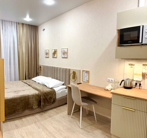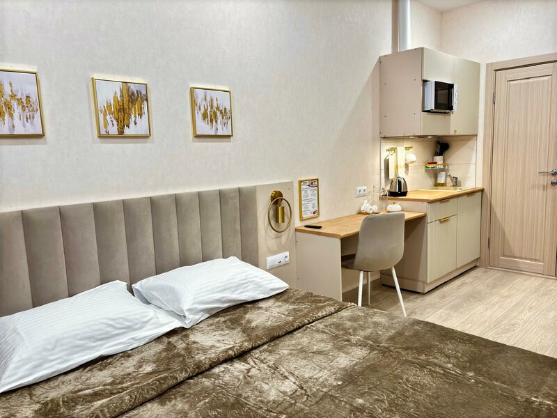 Отель «Бастон на Никитина» предлагает бесплатный Wi-Fi и парковку. В стоимость проживания включён завтрак по меню. В отеле есть прачечная, гладильные принадлежности, общая кухня с техникой. На каждом этаже — кулер с горячей и холодной водой. В номерах — мини-кухня, холодильник, плита, посуда, телевизор, кондиционер, тапочки и халаты. Предоставляются услуги трансфера, включая поездки в аэропорт, а также доставка еды в номер.