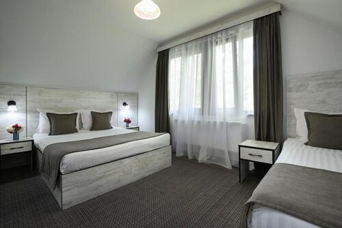В гостинице есть ресторан, сауна, конференц-зал. Можно прогуляться по территории и в саду. И вы наверняка захотите отдохнуть у бассейна — он тут тоже есть. Причём крытый.