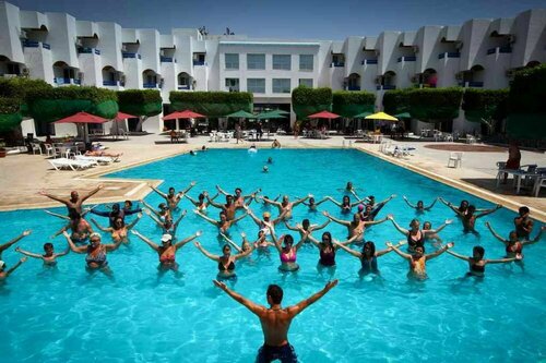 Бассейн хороший, иногда включали горки. В нем каждый день была аква аэробика. Каждый день на сцене танцы аниматоров, стараются, потом танцы перед сценой.