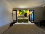Номер. Не большой, реновация отеля была в 2017 году (по источникам в интернете). Видны следы закрашивания трещины. В номере есть сейф - закрывается на ключ. Кондиционер прямо напротив кровати и дует на спящих, поэтому спали без кондиционера в духоте. Вместо привычного шкафа перекладина за шторой. Номера размещены в бунгало на разной высоте (порядка5 уровней) с учётом скалистой местности, будьте готовы к лесницам. По территории можно передвигаться на багах.