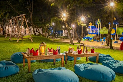 В гостинице есть ресторан, бар, тренажёрный зал, сауна, конференц-зал. Можно прогуляться по территории и в саду. И вы наверняка захотите отдохнуть у бассейна — он тут тоже есть. Причём открытый, переливной. Море тут близко — до него всего 93 м, поэтому легко можно планировать пляжный отдых. Есть возможность взять напрокат велосипед.