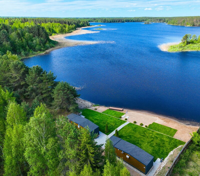 На территории комплекса есть Wi-Fi, пирс, возможность аренды лодок и гидроциклов, собственный пляж, баня, костровая чаша, стоянка, терраса с мебелью и барбекю. Можно проживать с домашними животными. Также имеются аптечка, видеонаблюдение и огнетушитель.