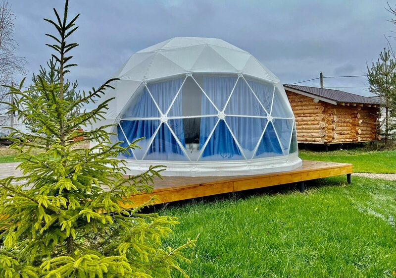 Приезжали с женой на сутки, чтобы вечером с дороги отдохнуть и отоспаться, а на следующий день посмотреть Калязин и поехать обратно. Это был первый опыт проживания в подобном куполе. Место замечательное, очень ухоженная, чистая территория, рядом атмосферный пирс. Недалеко пляж, но до него, к сожалению, не было времени добраться, хотя хозяевы предлагали отвезти и показать, надеюсь, в следующий раз получится, тем более туда лучше ехать летом. В куполе всё очень продуманно - мебель подобрана со вкусом, кровать огромная и удобная, везде тщательно убрано. Опасались, что будет холодно (в октябре), но в итоге перед сном пришлось даже убавить отопление и приоткрывать дверь проветрить. Над ванной была вторая кровать, но её не использовали. На кухне есть всё необходимое, парковка в 30 метрах. Главный плюс этого места - хозяева, видно, что относятся с большой любовью и заботой. Всегда были на связи и готовы помочь, создалось ощущение, что мы приехали в гости к хорошим, гостеприимным друзьям. Редко встречается такой подход семейного бизнеса и хочется пожелать, чтобы этот энтузиазм никогда не угасал (сам долго работал в гостиничном бизнесе и хорошо знаю, какими бывают гости) надеюсь, сюда будут приезжать только хорошие люди. В конце обычно пишут про минусы, но здесь их просто нет, разве что нужно заранее учитывать, что звукоизоляция в проживании такого типа в принципе невозможна и вы можете слышать соседей.