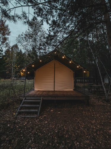 Просто волшебное место! Тишина такая, что даже разговаривать не хочется, чтобы сохранить эту тишину. И уж тем более включать музыку или телевизор ) Там эти, привычные для городской суеты, спутники жизни кажутся максимально неуместными. Благодарность организаторам за отсутствие этого оборудования в домиках ) Чтоб даже соблазна не было ))
