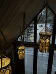 Очень хорошее расположение домов друг от друга , чувствуется уединенность и наслаждение видами из панорамного окна, а вечером территория подсвечивается огоньками, можно погулять и насладиться свежим воздухом и красотой этого места, есть зона с горящим костром 🔥