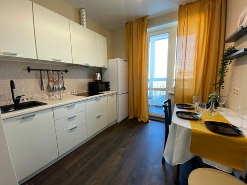 Мы много путешествуем по стране и как правило снимаем квартиры,т.к. это удобнее в плане приготовления еды. На этой квартире была одна "убитая" сковородка без крышки,была крышка без кастрюли,ковшик пластиковый с мухами ( плита индукционная) , одна чайная ложка,одна столовая ложка,один нож. Никаких лопаток и т.д и т.п. для приготовления, разумеется,не было. Плита тоже была не в лучшем состоянии. На кухне нет кухонного полотенца и один запасной пакет для мусора. В чайнике огромный слой накипи.