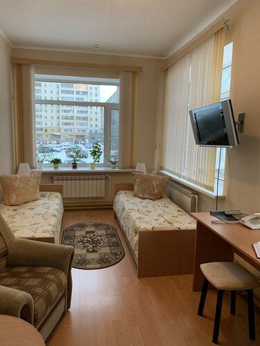 Отличная гостиница - приветливый и гостеприимный персонал, просторные, уютные и чистые номера. Я останавливался в двухместном номере. В номере есть все необходимое для комфортного проживания. Очень понравилась широкая кровать с комфортным матрасом и большими мягкими подушками. Приятно удивило наличие автономного отопления в гостинице, поэтому уже в начале сентября несмотря на прохладу и сырость на улице, в номере было тепло и комфортно. Особенно благодарен очень приятной женщине, администратору Ирине за внимательное отношение к постояльцам, за вкусные по- домашнему приготовленные завтраки (на выбор пять вариантов, я все попробовал и очень доволен). По условиям проживания - отличное соотношение цена/качество. Если будет возможность, то обязательно сюда вернусь, в Чибью больше не поеду.