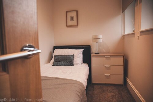 Здесь созданы все условия для комфортного проживания — есть холодильник, телевизор, утюг, микроволновая печь.