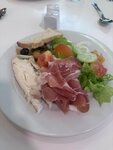 Там уже нет меню а просто выносят блюда была тоже пюрешка,креветки и мясо впринципе креветки в нем были хорошие а остальное ну как бы пойдет но опять же от слова ресторан чуть большего ожидали а там пюрешка с куском мясо но норм