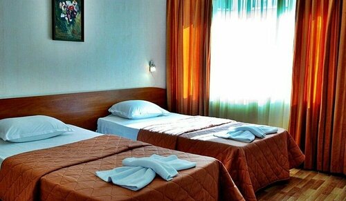 Здесь созданы все условия для комфортного проживания — есть кондиционер, холодильник, телевизор, фен, утюг, чай/кофе в номерах, сейф, отопление, терраса, мини-бар.