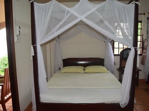 Удобное расположение, близко к морю, магазинам, кафешкам, Но тихо для сна, кот правда орал несколько раз(март!) Бунгало наше было под деревом и манго ночью фигачило нам по крыше, сначало мы напряглись, потом когда поняли наутро что это было- посмеялись. Главное достоинство это зелёная территория, патио большое перед номером с гамаком и стол со стульями, не для галочки как в некоторых отелях.А ещё классный бассейн в центре, в котором можно было купаться и ночью, с чистили его рано утром! Все для людей, персонал очень услужлив.Помогали всегда, что бы ни попросил. Английский не очень понятен бывает, но это из-за произношения и нашего европейского восприятия.Я настроил в помощь гугл переводчик вьетнамский и ,,было счастье,,)) Девчушка маленькая на ресепшен и парень , им огромное спасибо! И когда я заказал такси в аэропорт они предоставили микробусик от отеля бесплатно! Супер! До этого я жил три дня в другом отеле, а в этом провел девять и мне есть с чем сравнивать. Один минус комары и щели в номере, я купил местный ,,дихлофос,, и когда уходили перед вечером гулять брызну в номере, а по приходу их уже нет!)) Отель - цена качество хороший!