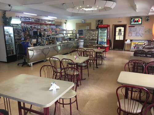 Парковка большая, на счёт душа не знаю, первое впечатление на пять, но кафе это как сходить в элитный ресторан! Суп, макароны с гуляшом, чай, три хлеба, салат из капусты 890р. !!! При том, что я не сказал бы, что вау как вкусно ( но и то что есть не возможно, тоже сказать не могу) в общем, кушал я там, первый и последний раз!
