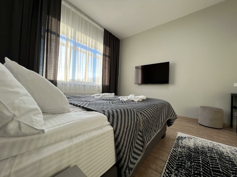 Постельное бельё все в катышках, мятое, желтоватое. Наволочки потертые. Вот такие подушки были в момент заселения, еще свое белье они называют "дорогим сатиновым" 🤣 Администрация, оно старое, потертое и не глаженое. Размер простыни не соответствует размеру кровати. Есть ощущение, что постель не меняется. Девушка на ресепшн грубая, громко разговаривает с коллегами в коридоре, шумно. Пытались налить воду из кулера в коридоре, не разрешала, зато дала 🤣ОТКРЫТУЮ бутылку воды, ну просто феерверк. Т.е клиент должен использовать открытый балон с водой. Супер) Забронировала на сайте, пришло подтверждение брони, решила позвонить - по звонку забронировали по другой цене как другому клиенту и без комиссии агрегатора. Т.е номер продали 2 раза) Приехали, администратор решает проверить бронь и сообщает, раз я с сайта через агрегатора бронировала до звонка, то цена другая (с комиссией агрегатора). Я говорю, давайте я ту бронь отменю (для отеля цена не меняется, только я не плачу комиссию агрегатору), вы по этой заселите, ответ: "отменяйте, но я не знаю, когда она отменится, а до этого вас не заселю" т.е предлагает мне же мою отмену подождать, когда пройдет, потом она меня, сидящую напротив, решит заселять или нет))))мы были с детьми! Пойти на встречу- нет не знаю.... Впервые такое отношение встречаю!!!!Отзывы не соответствуют действительности. Придорожные гостиницы есть намного лучше и дешевле! Лучше проехать чуть дальше, или остановиться не доезжая этого чудо-места.
