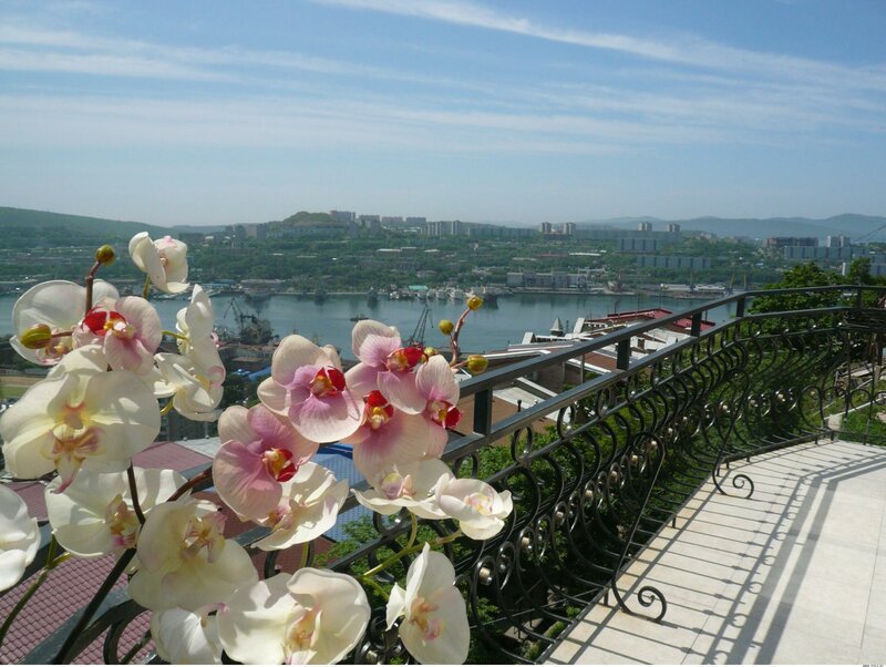 Из окон отеля открывается красивый вид на город и бухту Золотой Рог. Рядом с отелем находятся различные кафе и рестораны, среди которых «Bob Marley`s Kitchen», «Пицца Хауз», «Сковорода», «Ретро», «Молоко и Мёд», «Брюгге Паб» и «Камбэй».