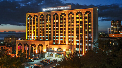 Отдыхал здесь семьей 4 человека, дети 7 и 12 лет, взяли номер на 14 этаже джуниор сьют около 80кв с видом на море. Конечно, на этапе бронирования сумма показалась достаточно большой хоть и со скидкой, плюс должны кешбек сделать по акции за ранее бронирование, но так как путешествуем редко и не было опыта пяти звездочных отелей, то решили попробовать и ожидания были очень большие. Прилетели мы во Владивосток вечером, в отель приехали в 21.30, и сразу очень вежливый охранник сказал как правильно подъехать ко входу, где стояли мерсы, а мы на такси комфорт) Сразу со входа видно, что отель роскошный, на ресепшене всё чётко, приятно, вежливо. Нам сразу принесли глинтвейн в номер. В номере всё на высшем уровне, даже тапочки хорошие и для ребёнка маленький халат и маленькие тапочки. И тут первое испытание, так как мы с дороги, голодные сразу пошли в представительскую комнату было 22.00,она работает до 23, а там пусто и никого не было, ну мы думаем, ну как всегда, решили заказать еду в номер, предварительно сказав об этом администратору. Пока мы выбирали, что нам поесть, перезванивает нам менеджер с этой комнаты, приносит извинения и спрашивает, что бы мы хотели поесть, я говорю, да что попроще, чтоб вам не заморачиваться, она мне, нам всё просто и начала перечислять, что может. Ну ок, я согласился и примерно в 23.00 нам привозят ужин(фото), мы просто обалдели, даже шампанское было и свежевыжатые соки, и всё очень вкусно, это был восторг в первые 1.5 часа пребывания на фоне шикарных видов, интерьера и всего увиденного внутри. На следующее утро проснулись и ещё раз обалдели от видов, уже дневных, пошли завтракать, очень вкусный шведский стол, а какие они делаю блюда из яиц, это шедевр, мне очень понравился тост мадам кокот, жене драники с лососем, детям скрембл и гигантская банка с нутеллой) и опять виды из окна. Ближе к вечеру, когда вернулись в отель пошли в spa, опять восторг, хороший бассейн, вдоволь накупались, два маленьких бассейна с пузырьками, где можно посидеть погреться, хамам и сауна с окнами на мост, очень необычно и красиво, для детей есть надувные жилеты, круги. Ну а потом, конечно, в представительскую комнату, там было всё как надо! Сын был в таком восторге от всего, что написал на блокнотике карандашом, что ему всё понравилось, мы с женой посмеялись. На следующий день мы поехали в океанариум, с отличными впечатлениями возвращаемся вечером в отель, а там очередное удивление, шторы закрыты, определённым образом включена подсветка, очень всё красиво и на записке сына в ответ написана благодарность за отзыв, положили две шоколадкии и еще напечатали на открытке благодарность назвав его по имени, хотя он написал просто так, не подписываясь. Это очень дорогие эмоции. Также, мы за день выпили все 4 бутылки воды, видя это, нам поставили не 4, а 8 бутылок. Да, это какие то 2 шоколадки и дополнительная вода, но полученные эмоции бесценны. К тому же, сотрудница клининга могла просто сделать свою работу, проигнорировав всё это, но эта ситуация доказывает, что она в большой команде! Элегантность во всех мелочах, сложно было покидать отель, ещё и снег выпал в крайнюю ночь. Пять из пяти, мы все в восторге. Отзывы я не пишу, только если плохо или нереально круто! Конечно, возможно, мы получили весь максимум внимания из-за того, что не сезон и мало гостей, но уверен, что и в пик нагрузки отель дер
