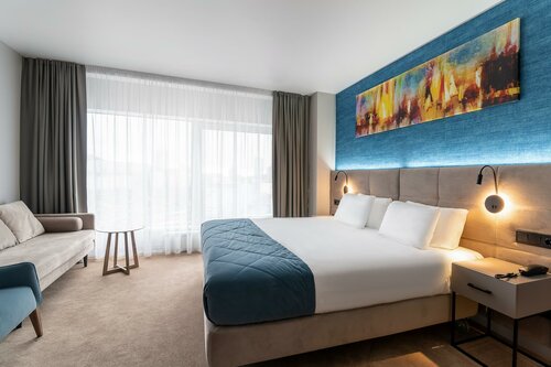 Отдыхал здесь семьей 4 человека, дети 7 и 12 лет, взяли номер на 14 этаже джуниор сьют около 80кв с видом на море. Конечно, на этапе бронирования сумма показалась достаточно большой хоть и со скидкой, плюс должны кешбек сделать по акции за ранее бронирование, но так как путешествуем редко и не было опыта пяти звездочных отелей, то решили попробовать и ожидания были очень большие. Прилетели мы во Владивосток вечером, в отель приехали в 21.30, и сразу очень вежливый охранник сказал как правильно подъехать ко входу, где стояли мерсы, а мы на такси комфорт) Сразу со входа видно, что отель роскошный, на ресепшене всё чётко, приятно, вежливо. Нам сразу принесли глинтвейн в номер. В номере всё на высшем уровне, даже тапочки хорошие и для ребёнка маленький халат и маленькие тапочки. И тут первое испытание, так как мы с дороги, голодные сразу пошли в представительскую комнату было 22.00,она работает до 23, а там пусто и никого не было, ну мы думаем, ну как всегда, решили заказать еду в номер, предварительно сказав об этом администратору. Пока мы выбирали, что нам поесть, перезванивает нам менеджер с этой комнаты, приносит извинения и спрашивает, что бы мы хотели поесть, я говорю, да что попроще, чтоб вам не заморачиваться, она мне, нам всё просто и начала перечислять, что может. Ну ок, я согласился и примерно в 23.00 нам привозят ужин(фото), мы просто обалдели, даже шампанское было и свежевыжатые соки, и всё очень вкусно, это был восторг в первые 1.5 часа пребывания на фоне шикарных видов, интерьера и всего увиденного внутри. На следующее утро проснулись и ещё раз обалдели от видов, уже дневных, пошли завтракать, очень вкусный шведский стол, а какие они делаю блюда из яиц, это шедевр, мне очень понравился тост мадам кокот, жене драники с лососем, детям скрембл и гигантская банка с нутеллой) и опять виды из окна. Ближе к вечеру, когда вернулись в отель пошли в spa, опять восторг, хороший бассейн, вдоволь накупались, два маленьких бассейна с пузырьками, где можно посидеть погреться, хамам и сауна с окнами на мост, очень необычно и красиво, для детей есть надувные жилеты, круги. Ну а потом, конечно, в представительскую комнату, там было всё как надо! Сын был в таком восторге от всего, что написал на блокнотике карандашом, что ему всё понравилось, мы с женой посмеялись. На следующий день мы поехали в океанариум, с отличными впечатлениями возвращаемся вечером в отель, а там очередное удивление, шторы закрыты, определённым образом включена подсветка, очень всё красиво и на записке сына в ответ написана благодарность за отзыв, положили две шоколадкии и еще напечатали на открытке благодарность назвав его по имени, хотя он написал просто так, не подписываясь. Это очень дорогие эмоции. Также, мы за день выпили все 4 бутылки воды, видя это, нам поставили не 4, а 8 бутылок. Да, это какие то 2 шоколадки и дополнительная вода, но полученные эмоции бесценны. К тому же, сотрудница клининга могла просто сделать свою работу, проигнорировав всё это, но эта ситуация доказывает, что она в большой команде! Элегантность во всех мелочах, сложно было покидать отель, ещё и снег выпал в крайнюю ночь. Пять из пяти, мы все в восторге. Отзывы я не пишу, только если плохо или нереально круто! Конечно, возможно, мы получили весь максимум внимания из-за того, что не сезон и мало гостей, но уверен, что и в пик нагрузки отель дер