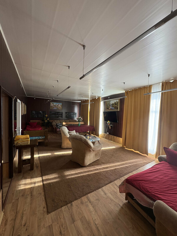Были во многих гостиницах, в том числе и придорожных. Данное место не понравилось от слова совсем!!! Во-первых, дорого за такой номер за одну ночь( как писали ранее, цены не указаны ни где, как на Вас посмотрят и тогда решат, сколько взять). Сначала сказали 5000,потом 4500 в результате сошлись на 4000🤝😁. И да🗣️ найти персонал не реально, приехали ели дозвались и уехали ни кого не нашли( оставили ключ в двери). Номер попросили с удобствами, вход был во дворе! Прозрачная входная дверь и муравьи это мелочи. Вот комната душ- туалет 🚿🚽🔥😁. На фото я приложила- купается и всё льется на туалет, полы все мокрые, зайти в комнату не возможно. Воды горячей мы так и не дождались. В комнате пыльно, не уютно. Окна вообще не моются!!!! В кафе цены зашкаливают, да и обстановка по мне угнетающая...... Темно, низкие потолки, всё пространство заставленно, ощущение что всё давит.... На территории идёт стройка.. Поручни детской кроватки все липкие. Сервиса и клиентоориентированности 0. Не рекомендую.