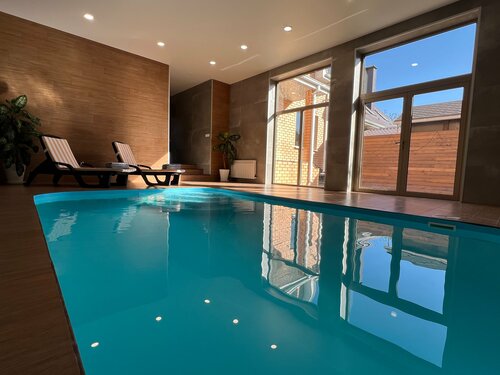 Коттедж «Макс» предлагает размещение до 10 человек в 4 комнатах. На территории есть мангальная зона с крытой беседкой, русская баня и тёплый бассейн. Предоставляются шапочки, подстилки и резиновые тапочки. Во дворе — бесплатная парковка с видеонаблюдением. Возможно размещение с животными (платно). Есть аптечка первой помощи и прачечная. Удобства включают холодильник, варочную поверхность, микроволновую печь, чайник и 10 комплектов посуды. Развлечения: телевизор SmartTV, светомузыка, Wi-Fi. Заселение с 15:00, выезд до 11:00.