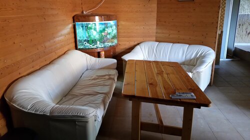 Останавливались в этом гостевом доме дважды: когда ехали на юг и на обратном пути. Номер заранее не заказывали, практически за 1 час до приезда. Номер был, хотя нас не мало, 5 человек (3 детей и 2 взрослых). Остановились в пристройке около дома. Была прихожая, душевая на 2 персоны, санузел и сама комната. Комната не большая, 3 кровати (1,5 было 2 шт и 1 большая), нам хватило, поскольку только ночь отдохнуть и дальше ехать. Номер чистый, был чайник и пакетики чая. Отдельно можно было разогреть покушать, там же холодильник и все столовые приборы соответственно. Понравилось, что это не прям возле трассы, а в отдалении, совсем рядом от трассы. Все хорошо, рекомендую, останавливайтесь не пожалеете.