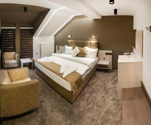 Здесь созданы все условия для комфортного проживания — есть кондиционер, телевизор, фен, чай/кофе в номерах, сейф, отопление, терраса, мини-бар.