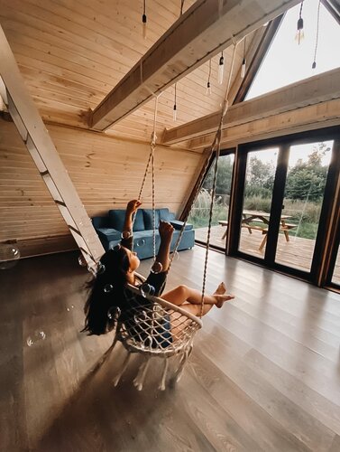 Очень атмосферное место, адекватные и общительные хозяева. Если вы хотите отдохнуть от городской суеты- вы определенно попали по адресу: уютные А-фреймы (очень комфортно вдвоем), есть мангальная зона, небольшая веранда, спальные места на втором и первом этажах (можно разместить и 4 взрослых), но комфортно именно вдвоем, отличное место для романтического уединенного вечера. В доме есть кондиционер, отопление, душевая, санузел, плита, посуда, чайник, телевизор, wi-fi. Можно устроить пикник или сделать барбекю. Панорамные окна и подсветка создают потрясающую атмосферу. Минус только один- подъездная дорога, рекомендую приезжать на паркетнике или авто с высоким клиренсом. Но в целом этот минус теряется на фоне остальных плюсов