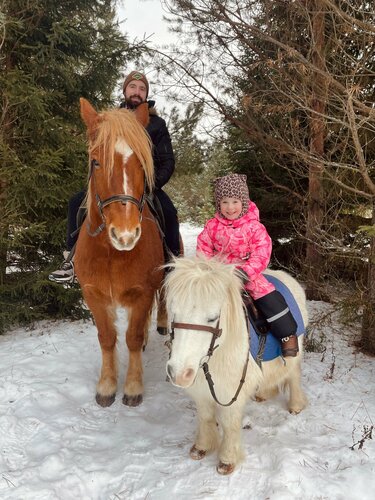 Есть конь и пони, овечек в наш приезд не было. На участке несколько котов, грелись на солнце.