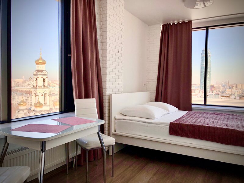 Начну с общения администратором до заезда. Всё подробно рассказала и описала по вопросам заселения и проживания. Номер идеальный. Панорамные окна в две стены полностью. Открывается шикарный вид на всю историческую культурную часть города. Храм на крови, храм Златоуст, Башня Исеть, светящийся Пассаж. Мы проживали с пятого по 7 января, соответственно попали на рождественский сочельник. Слушали звон колов с храма Златоуста смотрели салюты рождественские. Волшебно, празднично.