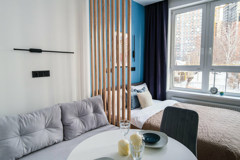 Мы арендовали 4 квартиры для рабочей поездки. Был поздний заезд.Пока не прошел процесс оплаты (переводом на номер телефона) все было идеально. Администраторы внимательные, на все вопросы отвечают, трубки берут, когда им звонишь. Заселились, перевели и понеслась😊 Кв 4а, 4б, 5а и 5б. В 4а, 5а, 5б не было горячей воды, в 4а и 4б не было интернета. Воду я нашел в итоге сам путем перекрытия клапанов бойлера, но интернет так и не нашел вход в наши дома. Я сказал администратору (одному из 6 с кем я переписывался) что меня не устраивает такое и либо сьезжаю, либо переезжаю. С горем пополам переехал. Но спустя сутки. Будет скрин с перепиской. В квартиру на этом же этаже (2й) но уже без плотных штор. Просто тюль. Голеньким там уже не походишь😅