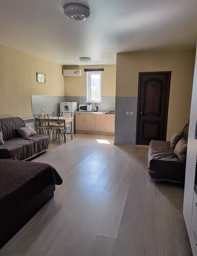 Отличное место, персонал и обслуживание на высшем уровне, до собственного чистого и немноголюдного пляжа 5 минут пешком, созданы все условия для отдыха с детьми, номера просторные, чистые и со всеми удобствами, вся обстановка современная, удобное транспортное сообщение- добраться можно куда угодно- остановка общественного транспорта в пяти минутах, рядом пятерочка, местные магазины и пара столовых, есть возможность заказать еду в номер по довольно демократичным ценам. Администратор Валерий свое дело знает, поможет и подскажет, на территории бассейн, мангальная зона, пара беседок и море игрушек что не оставит детей равнодушными!! общая кухня, стиралка в номерах чайник, микроволновка, холодильник. В общем все круто, спасибо за отдых!!!