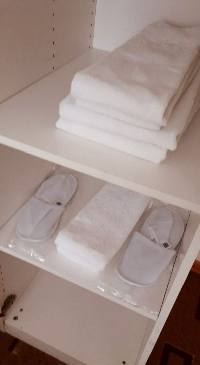 Останавливались мы в первом корпусе, номер был двухкомнатный, категория люкс😁. Если сильно не придираться, то из минусов: не работал слив в туалете, засор в душе, дверь между комнатами в ужасном состоянии и с трудом закрывается. Из плюсов: удобная кровать, тапочки и халаты в наличии. Также в номере у нас был свой стол, холодильник, чайник, микроволновка, шкафчик с набором посуды — нам это очень пригодилось, так как отмечали день рождения.