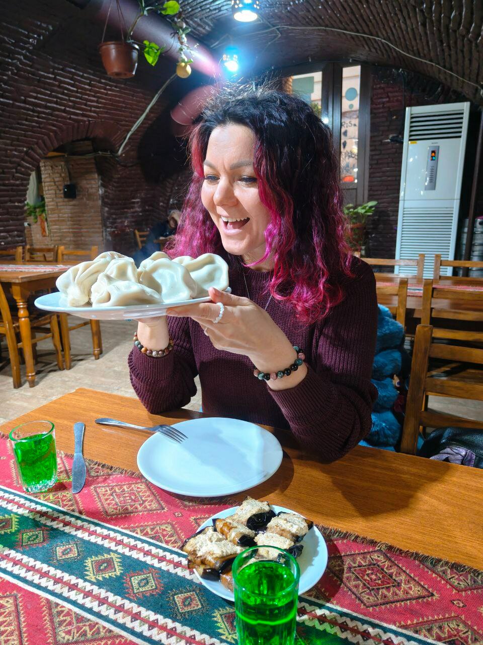 Но в итоге автобус доехал до ж/д вокзала, там тоже есть метро, и мы поехали, естественно, жрать, естественно, в духан «Рача», который обнаружили накануне. Здесь крайне вкусненькие печёные баклажаны с ореховым соусом, лимонад и хинкали. Мы не изменяем себе.