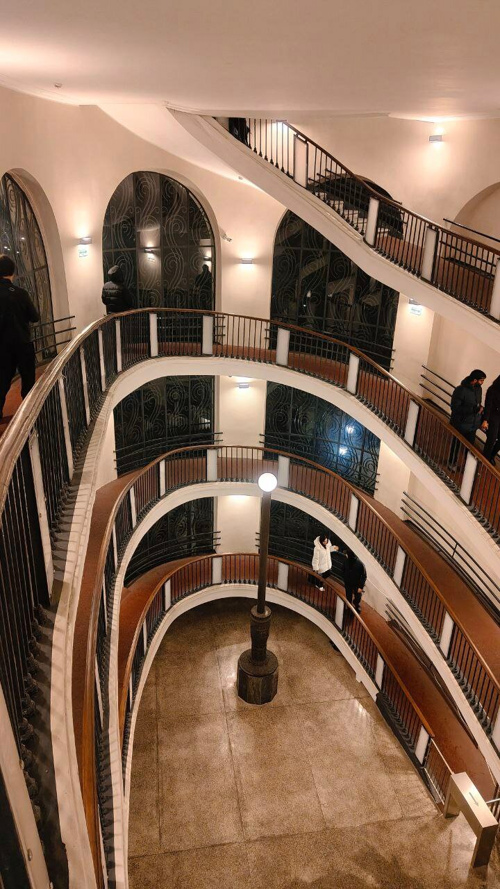 Темнеет и садимся на канатку. Она приезжает немного в другое место города, и оно очень интересное! Видели здание в форме двузаходной спирали? Вот и я нет. А на выходе...